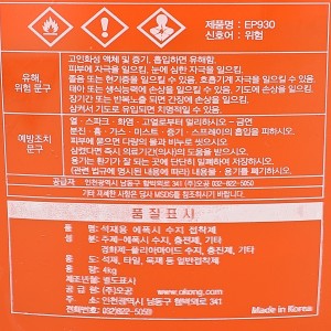 - 정확한 제품 사용을 위하여 MSDS 와 TDS 를 반드시 읽어보시기 바랍니다.